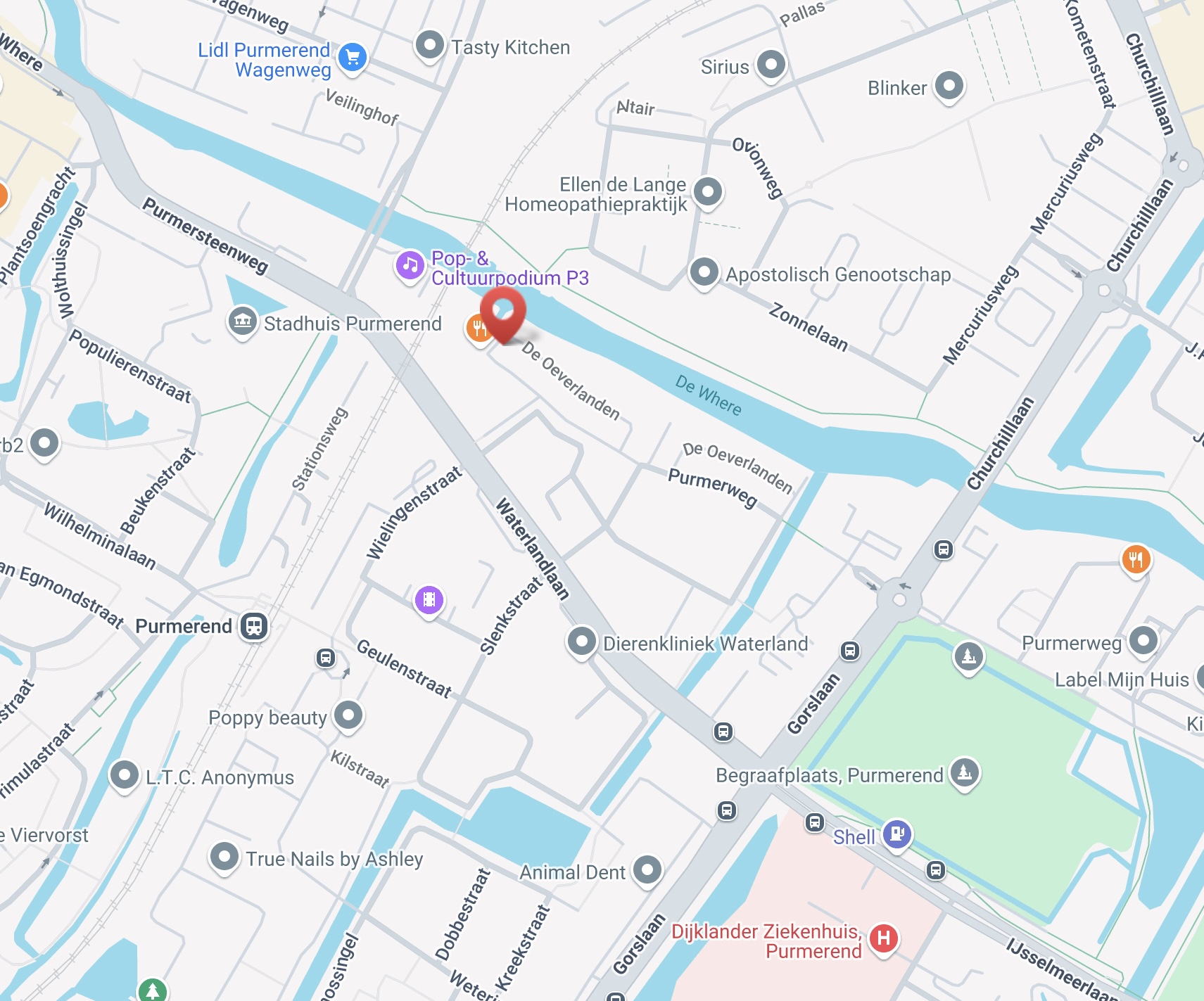 Deze is gelokaliseerd op De Oeverlanden 124, 1441 RD, Purmerend